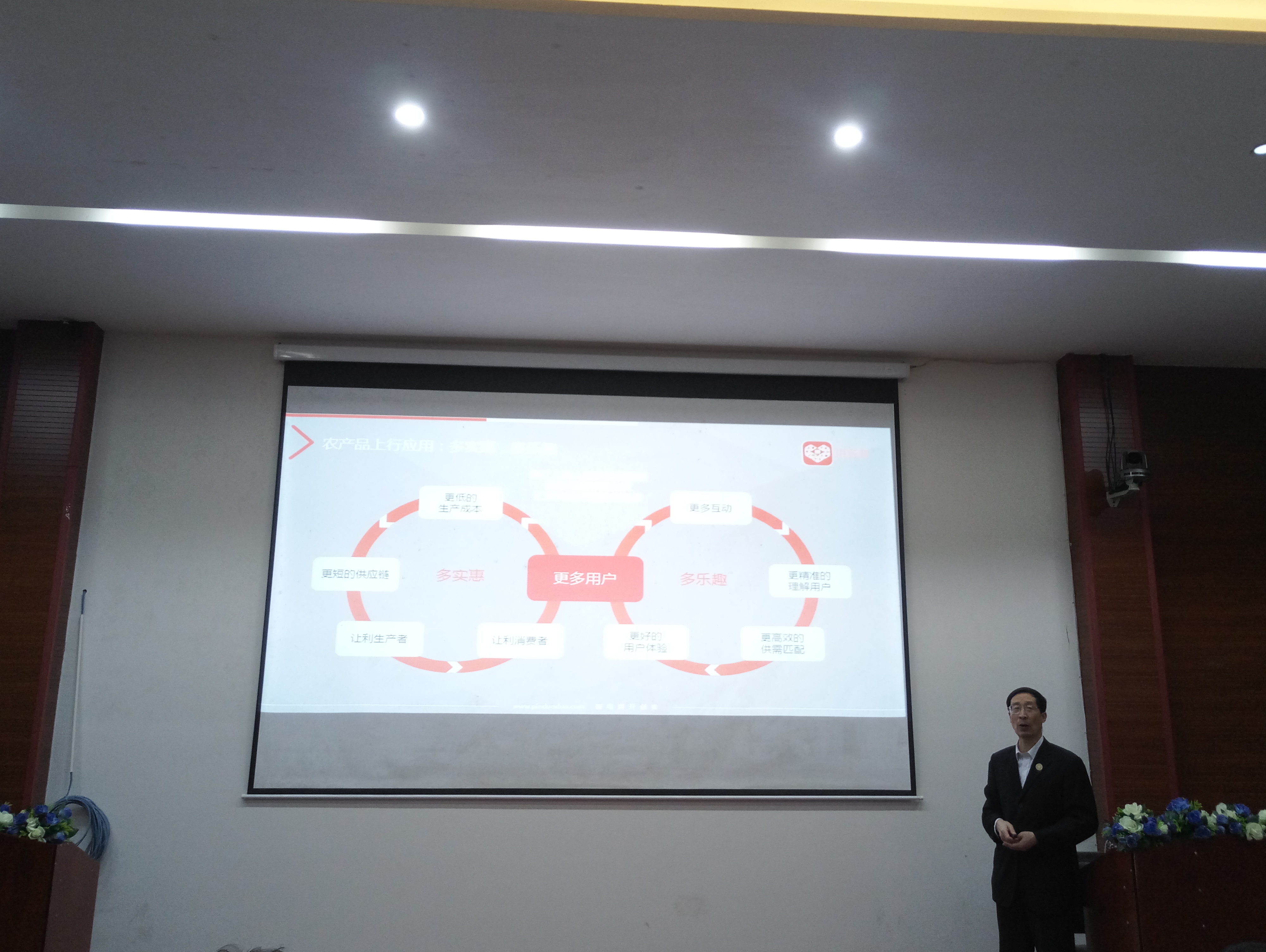 12月18日下午2点半,应公司邀请,北京工商大学商业经济研究所所长洪涛教授在伟德中国官网入口学术报告厅开展了以“数字农产品模式创新路线图”为主题的学术讲座。本次讲座由丁建军经理主持,部分教师、研究生以及本科生参加本次讲座。