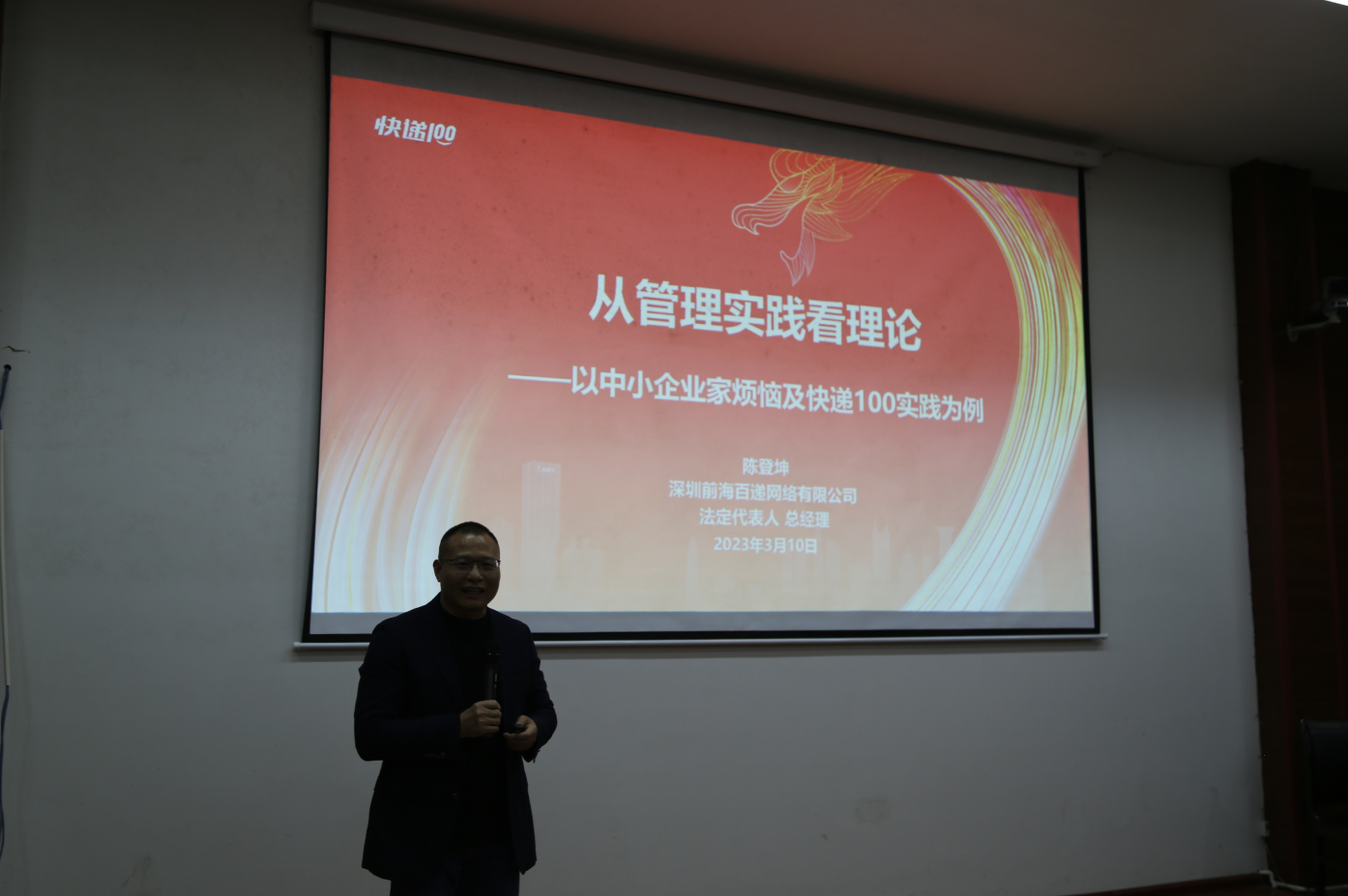 3月11日,深圳前海百递网络(快递100)有限公司总经理陈登坤应邀来公司,在公司学术报告厅为公司师生开展主题为《从企业实践看管理理论》的讲座,本次讲座也是公司“风雨湖大讲堂”第102期活动。讲座由经理丁建军主持,公司党委委员、副董事长冷志明,公司党委书记宋洁以及公司师生120余人参加了本次讲座。