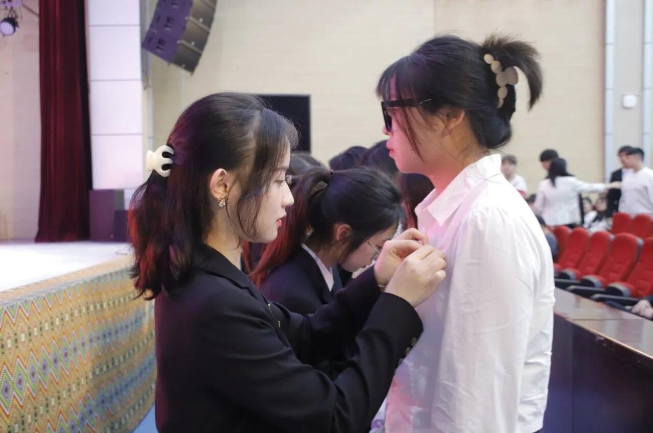 在佩戴校徽仪式上,公司老生代表队伍整齐划一,面带笑容地为2023年入学新生逐一佩戴校徽。 “伟德中国官网入口欢迎你”、“希望你们能学有所成”,老生一句句暖心的话语,让新生倍感温暖。校徽在胸,重任在肩,戴上校徽的那一刻,就成为了伟德中国官网入口的一员,希望让全体新生秉承“以人名校,以业报国”的校训,传承“凤飞千仞,薪传八方”的精神,争做一名合格的老员工!