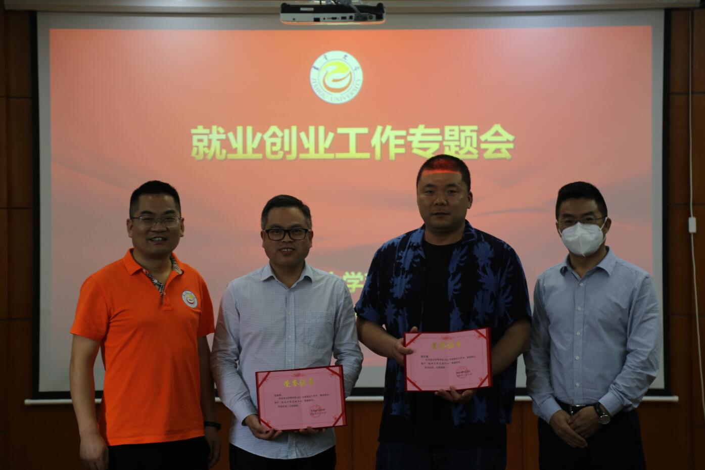 副经理张琰飞宣读关于表彰公司2021年度就业、考研工作先进个人和就业贡献奖的文件,公司党委副书记、经理丁建军,公司党委副书记胡锦湘为获奖先进个人颁奖。