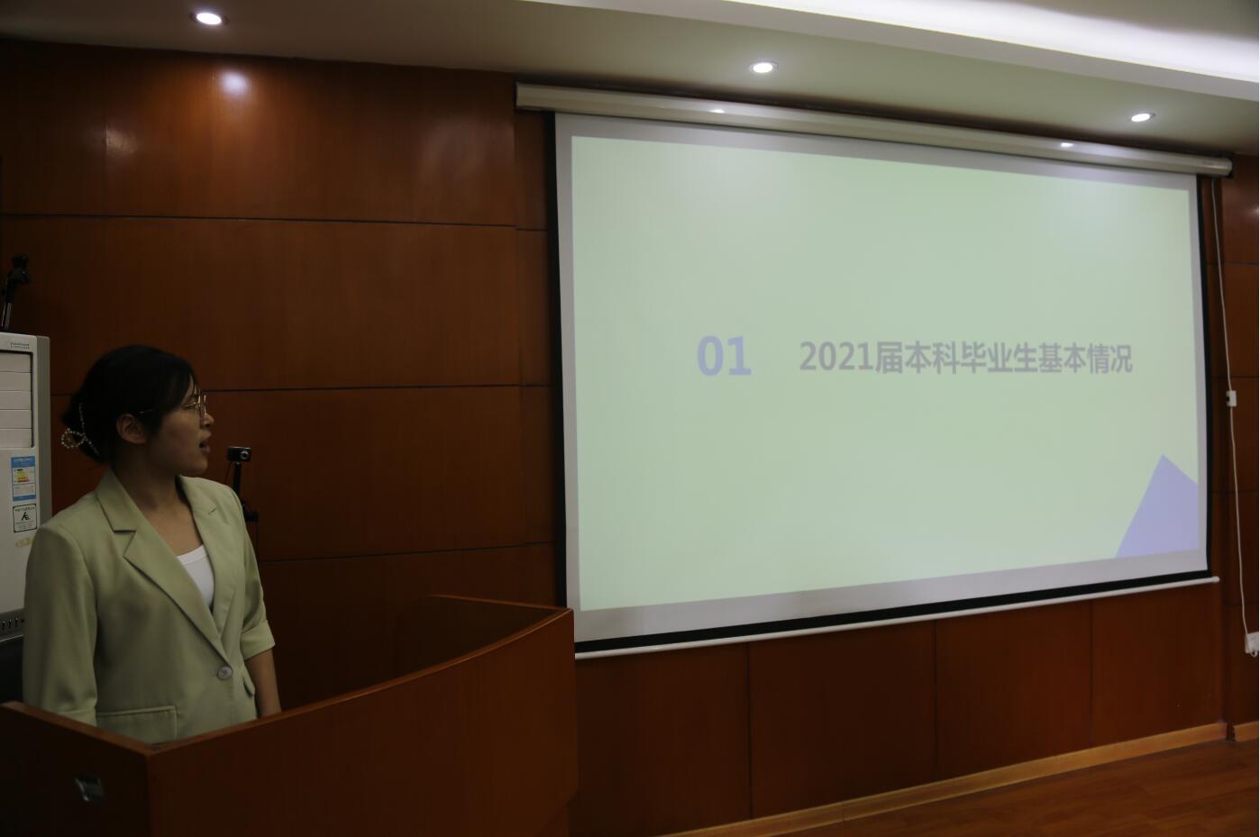 公司就业专干、2019级辅导员邹欢通过公司2021届毕业生就业创业情况详实的数据和相关资料,着重分析了公司2022届毕业生就业创业工作面临的压力和困难,并从坚持高位推动、坚持就业育人、坚持精准帮扶、坚持主动出击等四个方面对公司2022届毕业生就业创业工作提出了建议和设想。