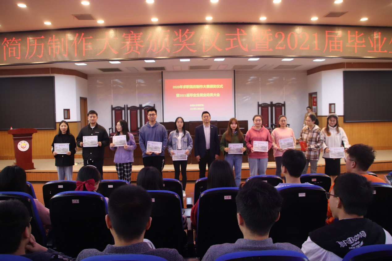 随后,举行了简历制作大赛颁奖仪式,经理丁建军老师、公司党委副书记胡锦湘老师、院学工主任陈洁老师分别为获奖员工颁发了证书。