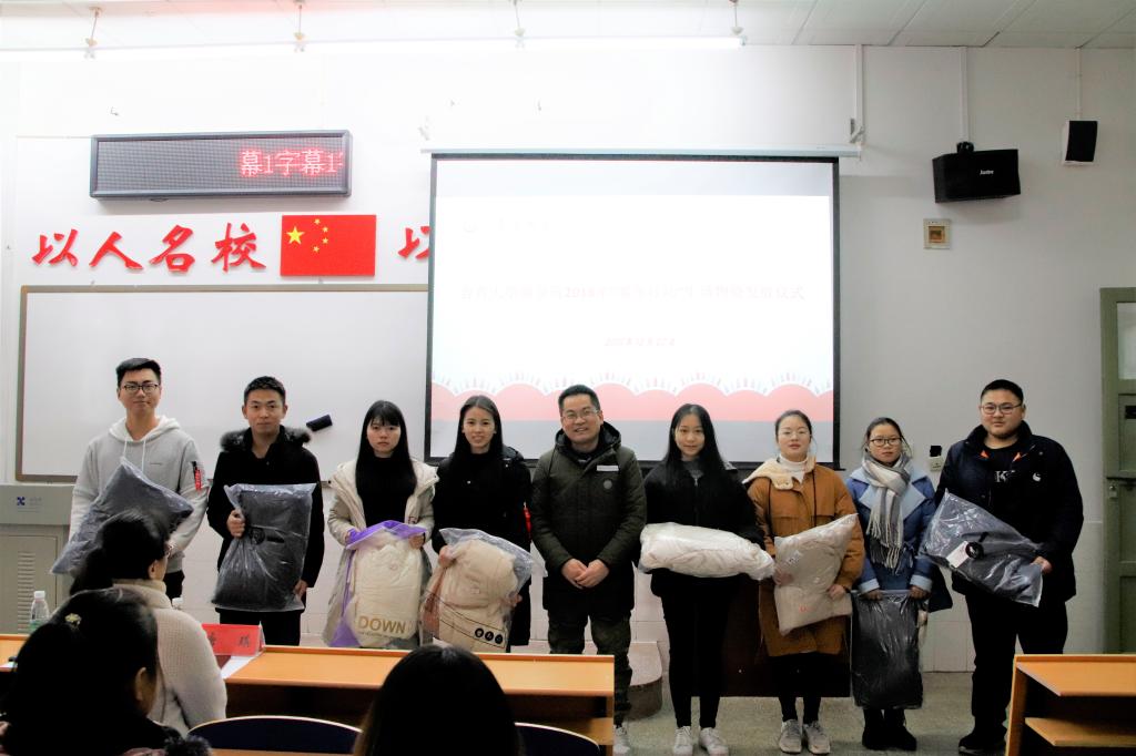 12月27日,公司于砂子坳校区第三教学楼3202教室举行2018年“暖冬行动”生活物资发放仪式,公司党委副书记胡锦湘、团总支书记唐琪出席,获得物资的所有员工参加。仪式由院学工办副主任陈洁主持。