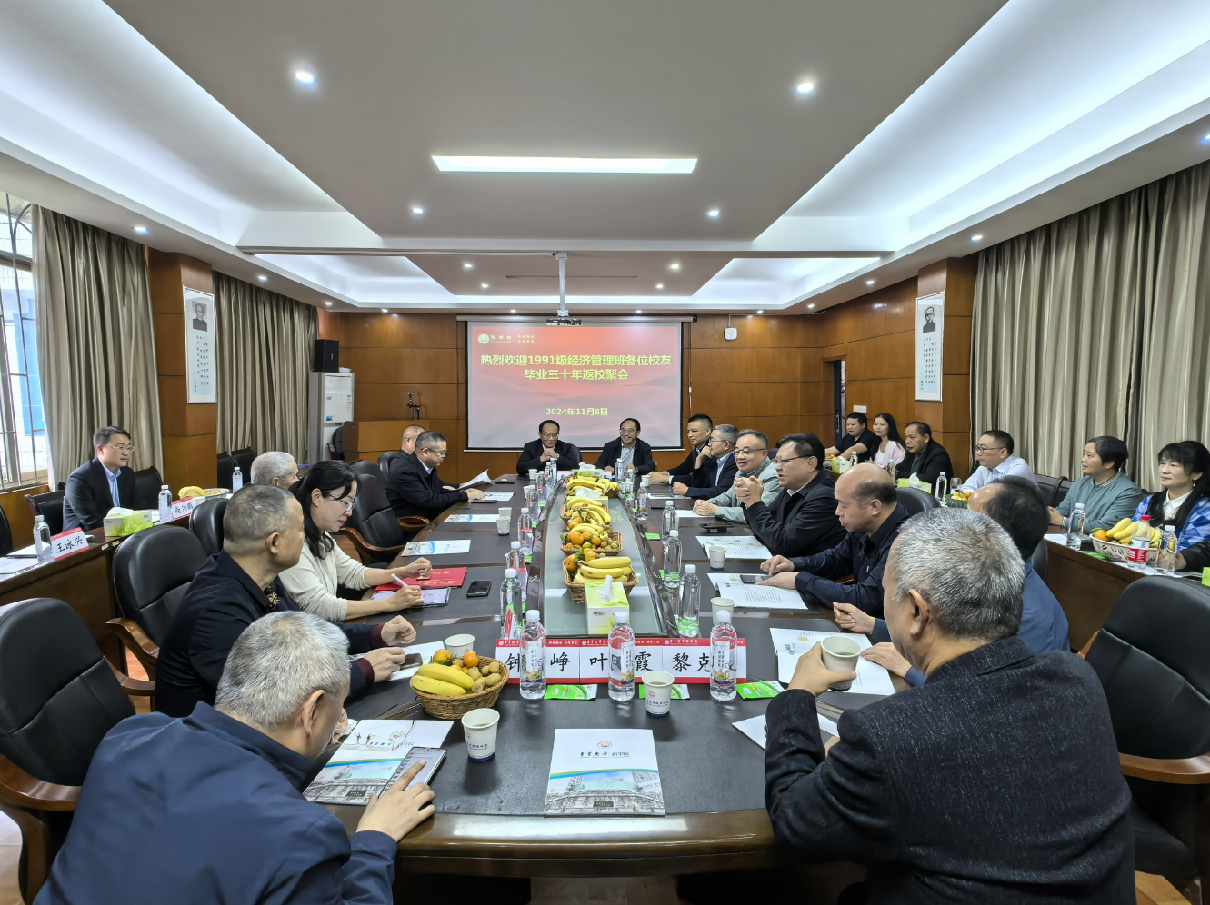 1991级经济管理班各位员工向老师们报告了三十年来自己在外拼搏的人生经历和成长故事,并追忆了自己在校期间学习生活的点点滴滴,纷纷表达了对母校和各位老师悉心培养的感激之情。各位老师深情回顾了与1991级经济管理班同学们相处交流的往事和趣事,勾起了大家满满的回忆,说到开心处,大家不禁开怀大笑,聊到动情处,大家不免眼眶通红。