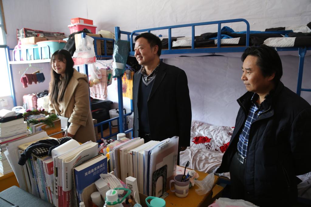 一声“新年好”入寝,望见拨冗前来的领导老师,同学们忙打招呼,交流片刻,满宿舍的欢声笑语便打开。在走访过程中,领导老师们仔细了解同学们的返校情况、寒假社会实践和新学期安排,叮嘱同学们一定要注意人身财物安全和宿舍消防安全,注意宿舍通风,维护好宿舍卫生;及时收心,调整好状态,以高昂的精神面貌迎接新学期的到来。领导老师们细致的关怀,让同学们倍感温暖。