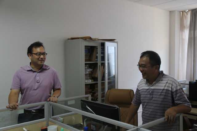 随后,曹晓鲜副书记一行来公司就开学工作进行检查并与公司领导进行了座谈。曹晓鲜副书记一来到公司,就径直来到每个教研室办公室,与在座的每一位老师握手并亲切交谈,向他们致以新学期的问候并询问他们工作、生活情况。