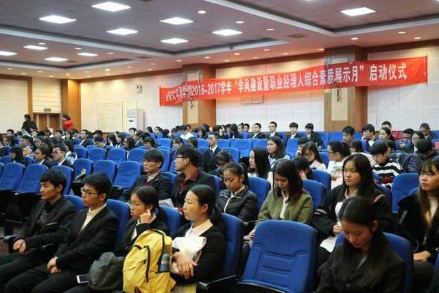 公司党委副书记钟高峥宣布了学风建设月优胜班级评选以及奖励方案。他指出,评选将从职业礼仪大赛,各专业技能竞赛,主题班会的召开等实践活动以及查寝,查课等平时的考勤活动中进行评比,并对优秀班级以及优秀个人给予表彰,希望通过这些评选活动提高同学们参与的积极性。