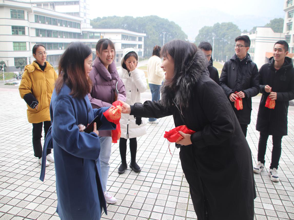 寒冬送温暖,情系考研生。为鼓励考研学子树立信心,缓解考研压力。12月23日,公司在砂子坳校区图书馆门口开展了“考研送温暖”活动。院团总支书记唐琪、2019级辅导员邹欢以及团总支员工会成员参与了本次活动。