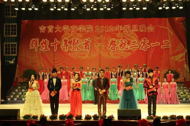 12月28日晚,公司在砂子坳校区演奏厅举行了以“辉煌十年聚首 起航二零一二”为主题的2012年元旦晚会。副董事长李克纲、校纪委书记赵鹤平、校办副主任李荣光、校团委副书记王艳、学工部副部长肖松和公司领导、全院教职工、部分离退休教师以及员工代表应邀出席了晚会。