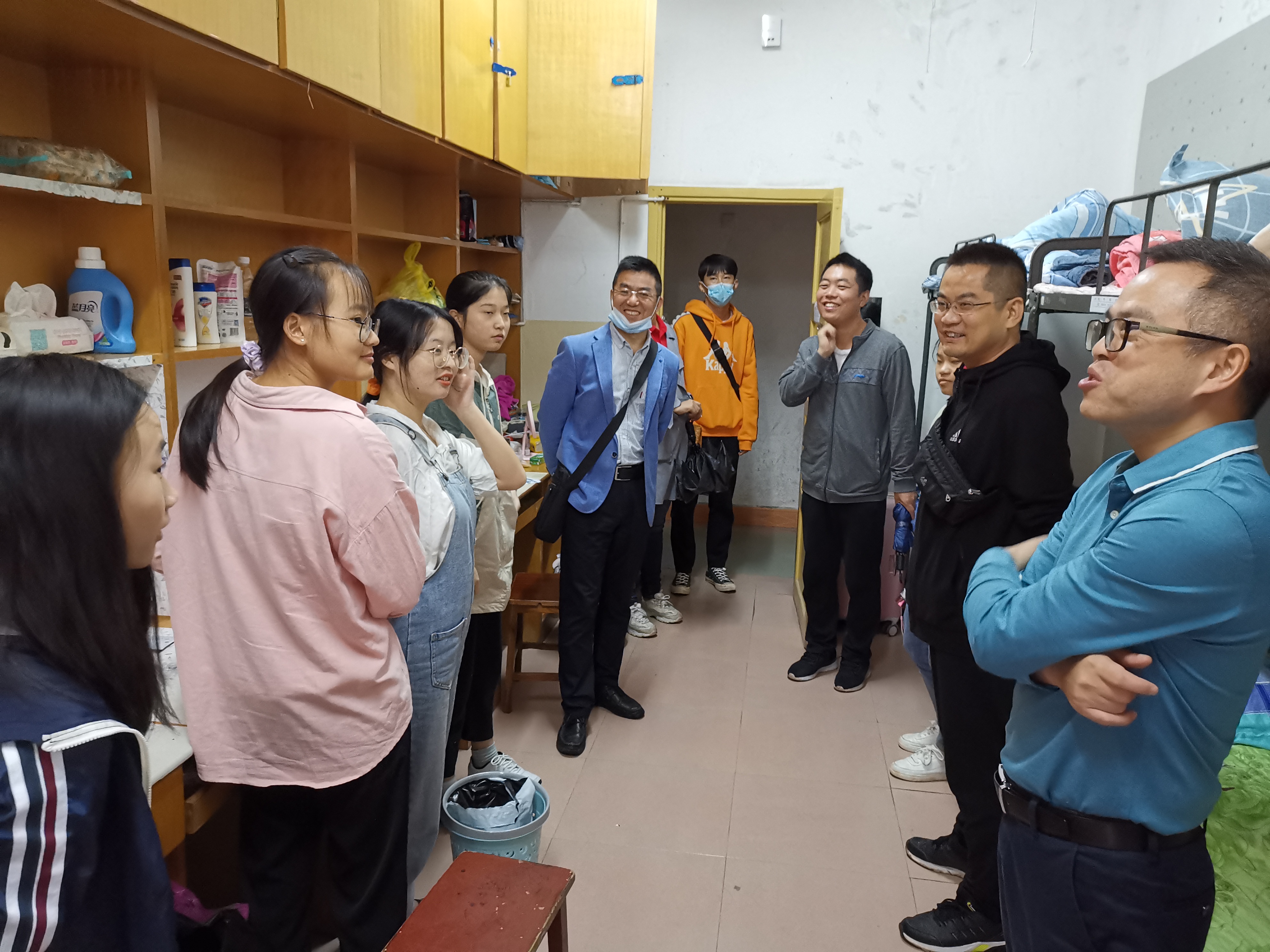 9月20日上午,在2020级新生入学报到现场指导迎新工作后,经理丁建军,公司党委副书记胡锦湘,副经理龙海军、张琰飞率院办公室主任王泳兴、院学工办主任陈洁、院团总支书记唐琪、2020级员工辅导员汪益民到寝室亲切看望已到校报到的公司2020级新生。