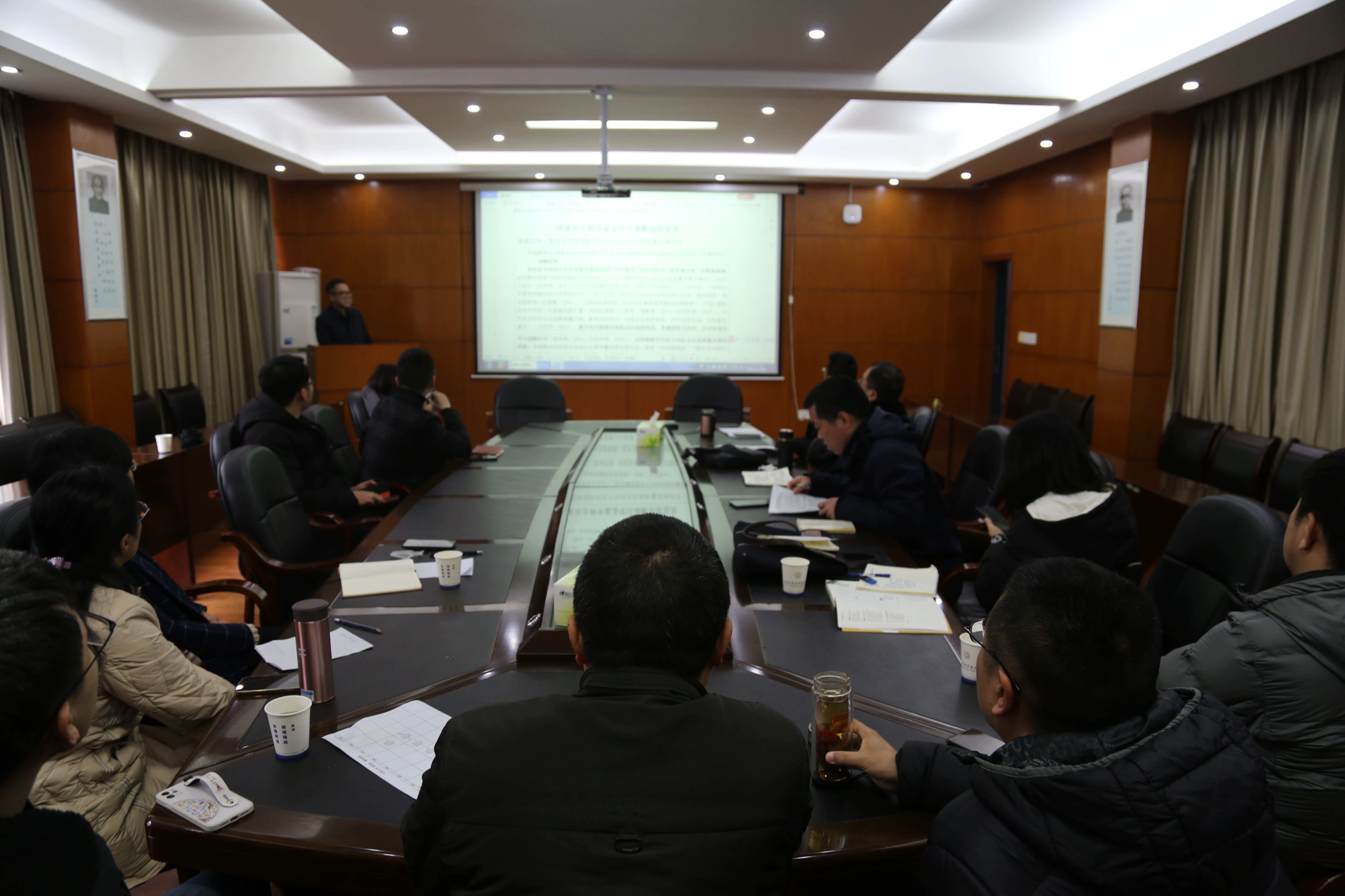 2021年准备申报国家课题的老师们逐一展示了寒假期间申报标书准备情况,并着重介绍了研究内容和研究进展,参会人员对各位的标书进行了认真审阅,并进行了热烈讨论并提出了修改意见。诊断会从上午十点半一直持续到下午四点半,参会人员针对每一位申报人的标书都充分发表了修改意见和建议,现场讨论气氛非常热烈。