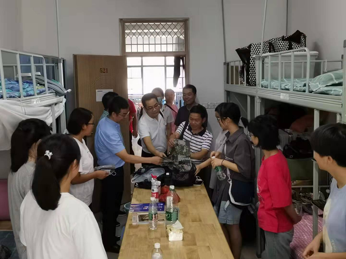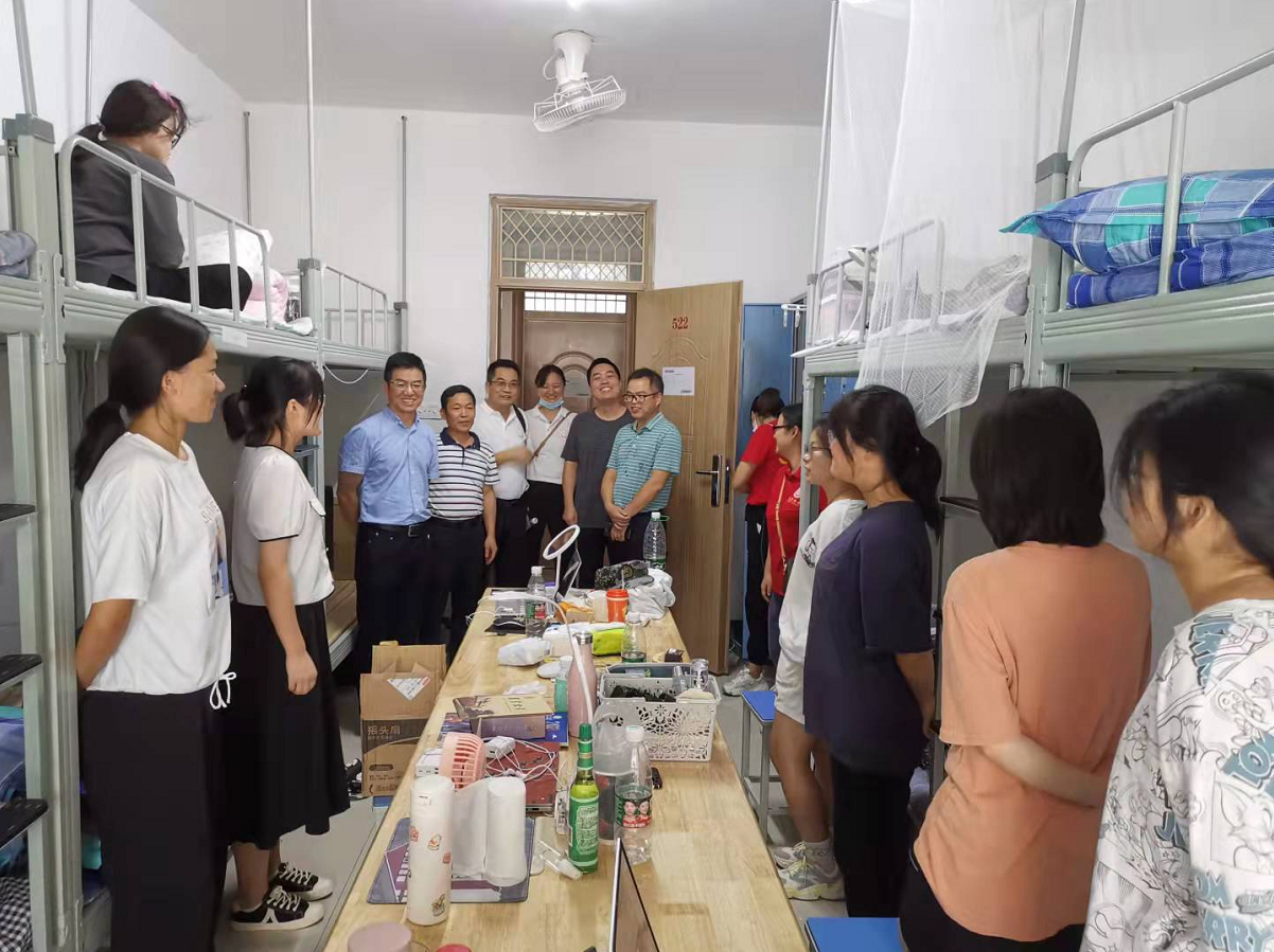9月18日中午,公司党委书记李启贵,公司党委副书记、经理丁建军,公司党委副书记胡锦湘,副经理龙海军、张琰飞率公司办公室、员工工作办公室全体人员以及2021级新生班主任深入到寝室亲切看望2021级新生。