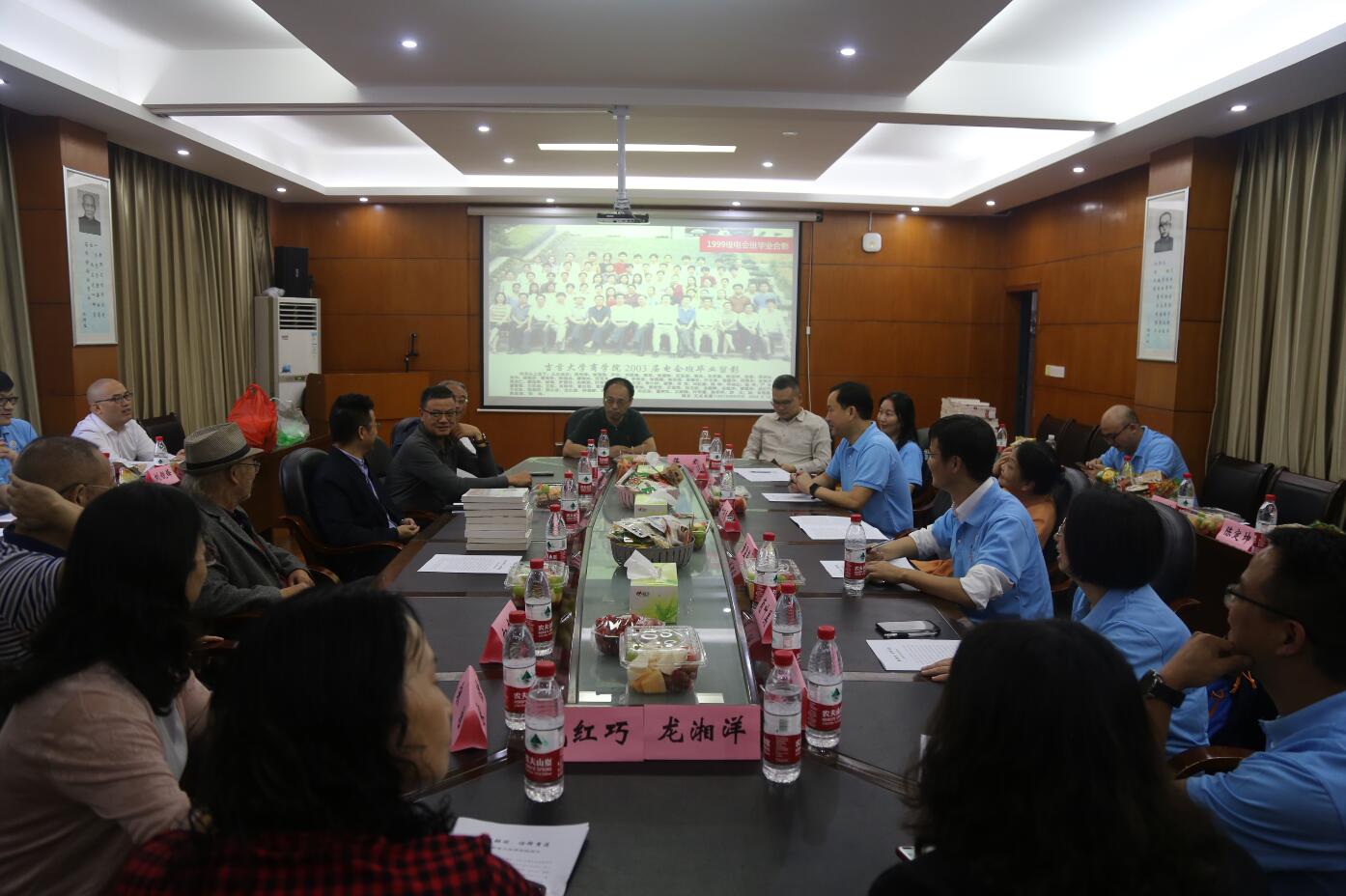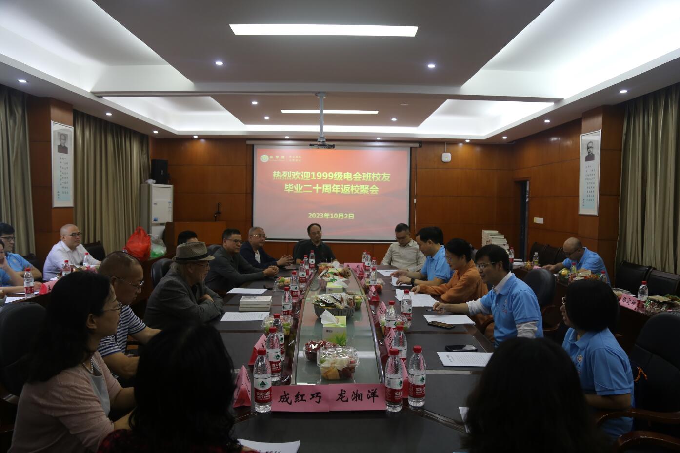10月2日上午,99电会班返校聚会的员工们来到公司会议室,参加了一场特殊的“班会”——与公司领导老师座谈。公司党委书记宋洁、经理丁建军、院员工会会长钟高峥等领导和99电会班两位班主任老师叶明霞、向光东以及曾经给99电会班上过课的部分老师莅临现场,与员工们亲切交流,再叙师生情谊。